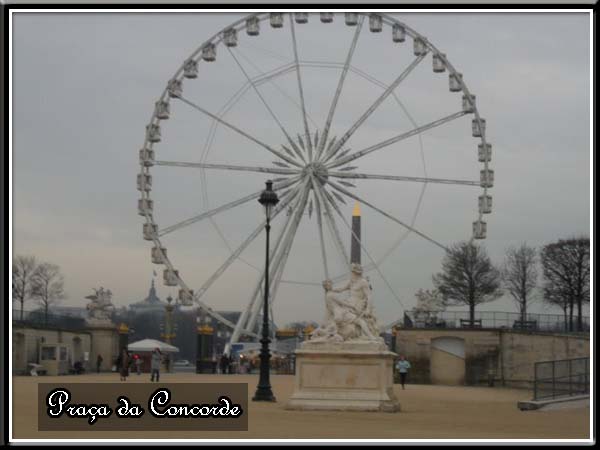 De um lado da Campos Elísios fica o Arco do Triunfo, do outro, a praça da Concorde, com sua linda Roda-Gigante, (caaaaaara x.x 10€ pra 7 minutos) não tão grande quanto a London Eye né, mas vale o passeio num dia sem neblina!